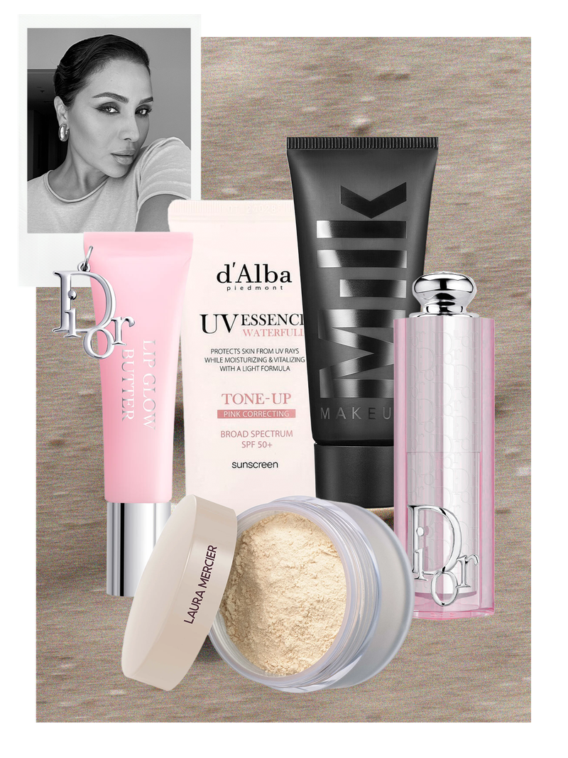 As for SPF, d’Alba Waterfull formula is a staple. It feels like skincare but protects like a proper sunscreen and doesn’t interfere with make-up. I also rate the Supergoop SPF – it doubles as a primer and sits well under everything. And I’m obsessed with the new Dior Addict Lip Butters. They give soft, sheer colour, feel really nourishing and are perfect for quick on-the-go touch-ups without a mirror.