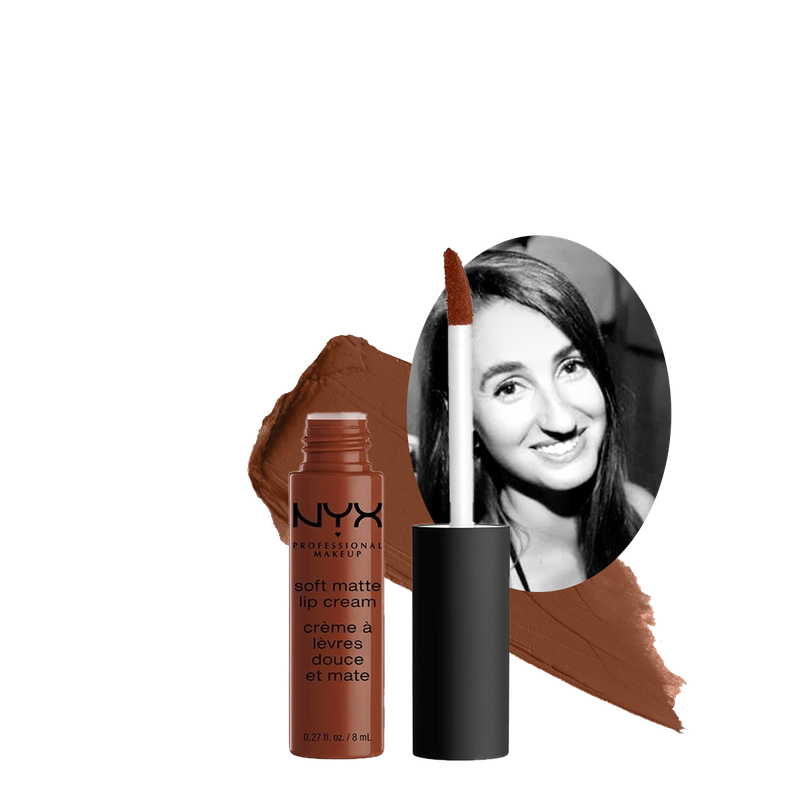 Expert Tip: “I like using NYX’s Soft Matte Lip Cream in ‘Dubai’ on deeper skin tones. If you have a richer tone, it’s important to choose a colour with a slight chocolate-red undertone – anything too brown can make the colour appear dull and grey on the lips. I recommend using this product alone for a more subtle finish, but I also like to add a drop of Fenty Beauty’s Gloss Bomb Cream Colour Drip Lip Cream in the shade ‘Cookie Jar’ for more dimension.” – Nadine