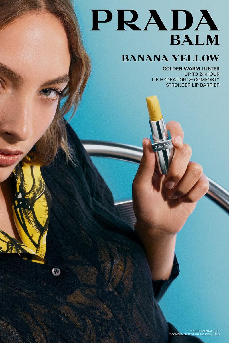 Prada’s newest lip balm is a fashion-meets-beauty moment worth noting. Inspired by the house’s Spring/Summer 2011 banana print, this pastel yellow bullet delivers a sheer golden finish across lips and cheeks, along with a warm banana scent that’s unexpectedly elegant. The formula – infused with jojoba oil and Bifidus extract – keeps lips hydrated for 24 hours, while the refillable design makes it feel like a conscious luxury buy.