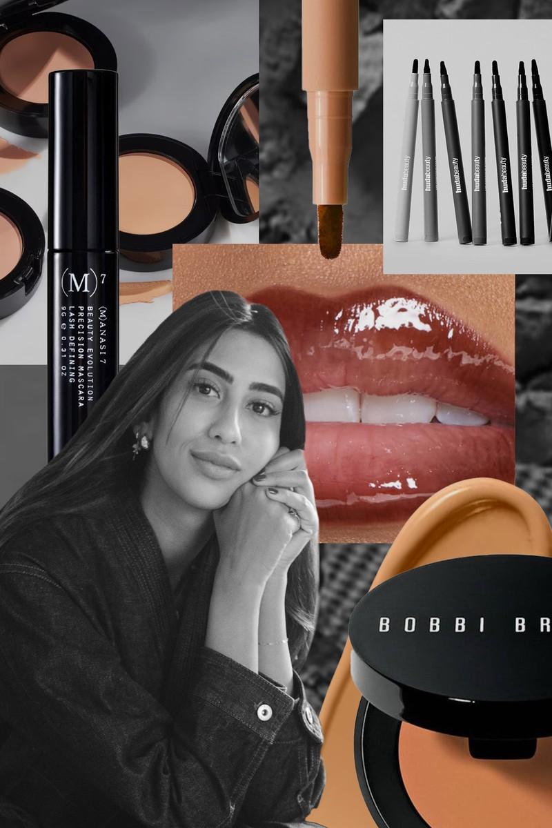 For mascara, I swear by the Manasi 7 Precision Mascara – it came in the SheerLuxe Middle East x Powder Beauty Box and I’ve been hooked ever since. I only apply it to my lower lashes for a soft, doe-eyed effect. On cheeks, the M·A·C Powder Blush is my go-to, its warm tone flatters every complexion. For lips, I love the Huda Beauty Lip Contour Lip Stain; it truly lasts all day. And I can’t go without the Bobbi Brown Corrector in ‘Dark Peach’ – it brightens so well I often skip concealer altogether.