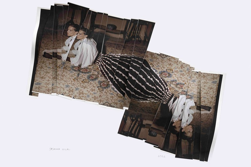 Yasmina Hilal is a Lebanese fashion/mixed media photographer and experimental filmmaker. Her methods concentrate on collaging different mediums including non-conventional objects, and her evolving style, marked by her innovative use of materials and techniques, continues to contribute meaningfully to contemporary art. Hilal’s mother, Natalie Mokadem, a renowned photographer and collage artist in the 1990s, gave Yasmina her first camera, a Canon ae1, at the age of 15. Now, her body of work – profoundly shaped by her Lebanese-American heritage and familial influences in fashion and photography – culminates in a unique blend of tactile collage art and film photography. Her work includes themes of motherhood, daughterhood, and cultural identity, which reflects both her personal experiences but also positions her as a significant figure among a new generation of Lebanese women artists.