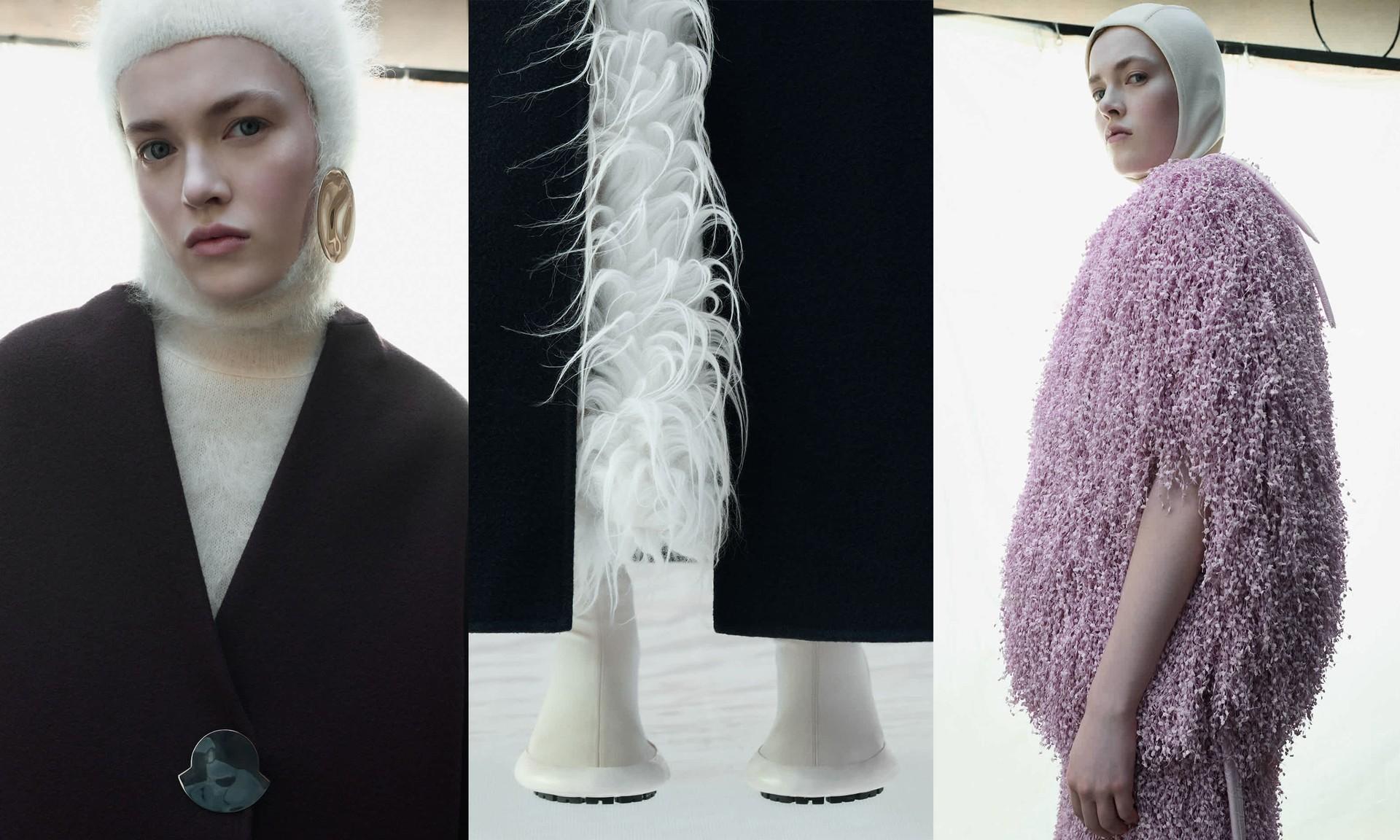 Moncler and Jil Sander have collaborated on a collection that blends Moncler’s alpine heritage with Jil Sander’s precise, sculptural design. Drawing inspiration from the natural world, the line showcases rounded, voluminous silhouettes from bulbous outerwear to dome-shaped skirts crafted in natural fibres including double wool, washed cotton twill and long-haired wool. Each piece is layered with Moncler’s signature down for warmth and fluid movement, while a circular silver-tone pin offers a subtle nod to the Moncler logo.