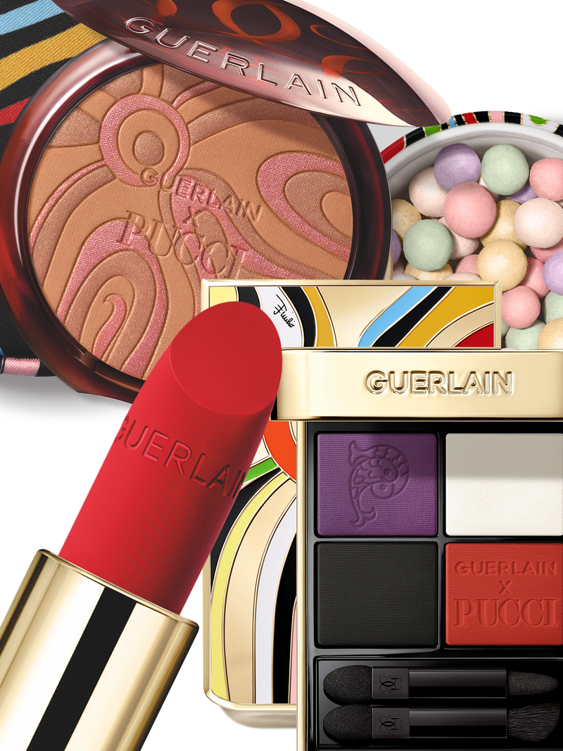 This season, Guerlain will collaborate with the iconic Italian fashion house Pucci to launch a limited make-up collection that celebrates bold colour. Featuring the signature Marmo motif, this collection includes reimagined versions of Guerlain’s iconic products, such as the Rouge G lipstick and Ombres G eyeshadow quad. The collection is a blend of vibrant shades and luxurious finishes – perfect for creating avant-garde looks.