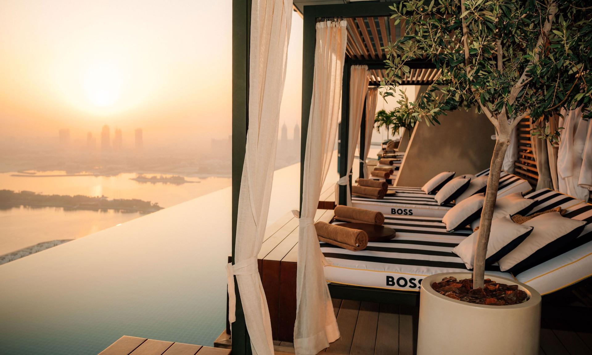 Pack your swimwear and head up to the 50th floor of The Palm Tower to take a dip in the world’s highest infinity pool at Aura Skypool Lounge, which is collaborating with Boss this winter. Positioned 210m above Palm Jumeirah, this 360° deck has been taken over by Boss until 29th December, where a wellness-themed pop-up will mark the reopening of the high-tech Boss store on Fashion Avenue in The Dubai Mall. Browse the latest clothing and accessories at the French Riviera-inspired space, or take a yoga class on Boss mats, after which you can sip from a coconut shell stamped with the brand’s logo.