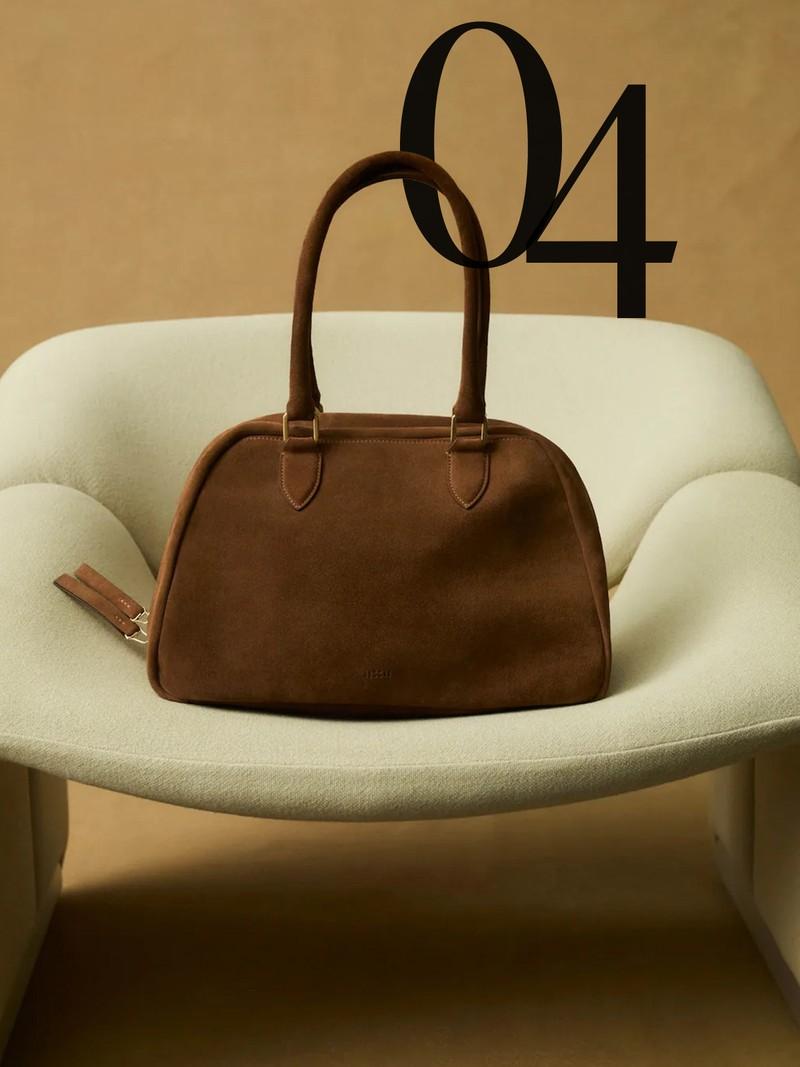 This bag isn’t dissimilar to Miu Miu’s bowling bag, with its minimalist design and suede finish. It makes for a great everyday bag, with a practical yet modern feel.