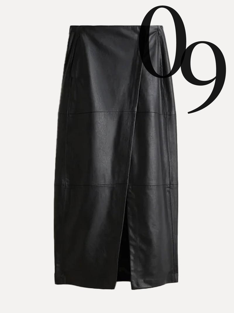 H&M’s coated leather skirt is proof that faux leather has gone up a notch. The high-shine finish and panelled detailing give it a luxe, designer-inspired feel.