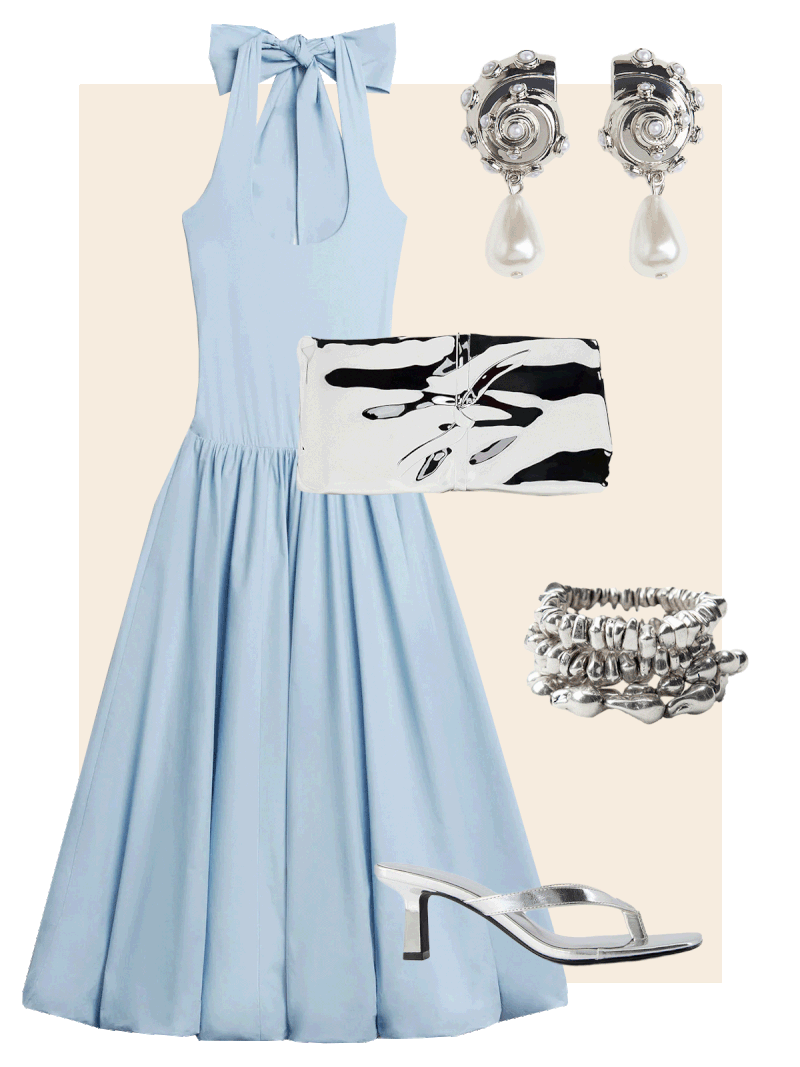 There’s no need to break the bank to make a statement at the next summer wedding. Style this dress with metallic accessories to make it event worthy.