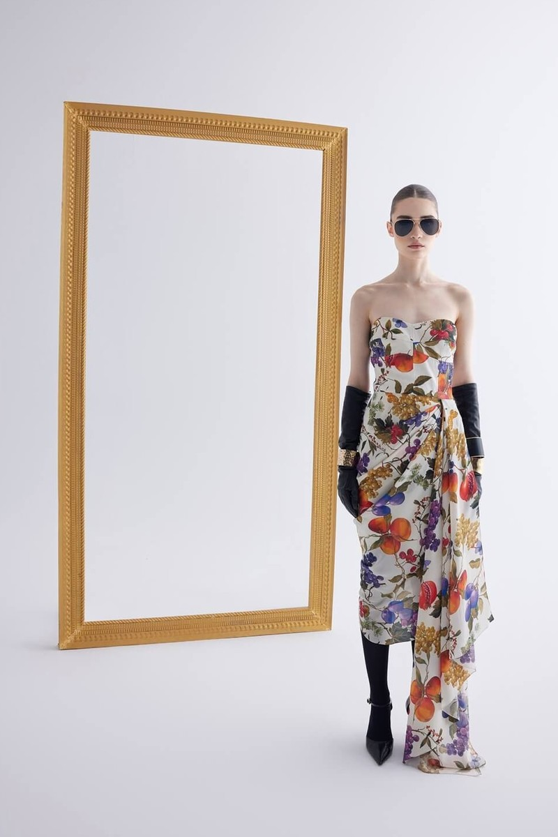 Dhruv Kapoor is celebrated for his contemporary and edgy designs that merge androgyny and power dressing. His collections often feature bold prints and embellishments, unconventional cuts, masculine tailoring and a streetwear influence. Established in 2013, the brand is best known for its innovative designs, precise tailoring, and diverse materials, and Dhruv Kapoor creates collections that reflect a mix of past, present, and future.