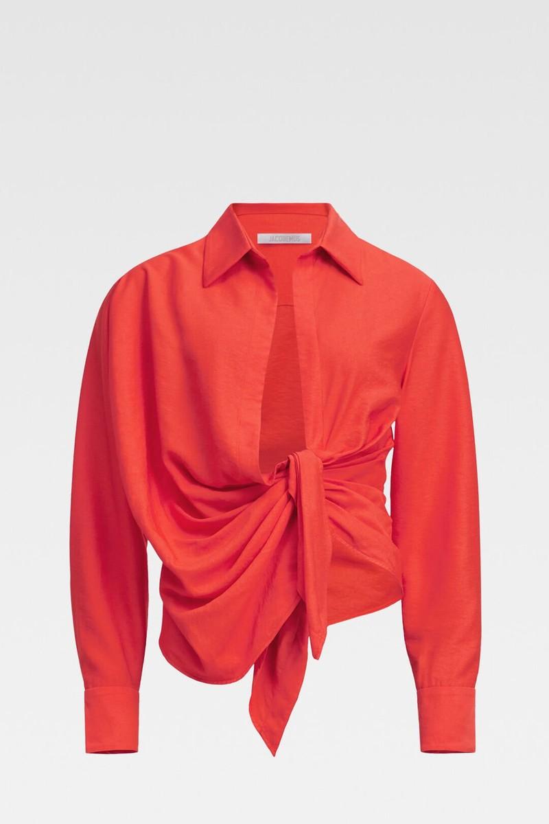 “This signature Jacquemus silhouette in hot tomato red makes a great update to the typical white shirt. I love this layered over a swimsuit and some denim cut offs.”