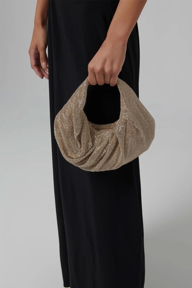 Champagne Yennefer Crystal Embellished Mesh Bag, AED 3,618 | Benedetta Bruzziches