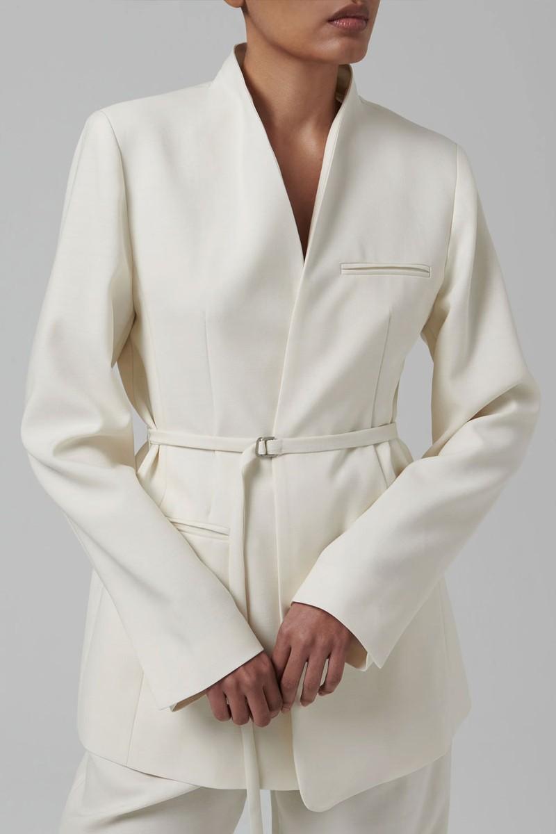 Wool Silk Collarless Belted Jacket, AED 2,350 | LVIR