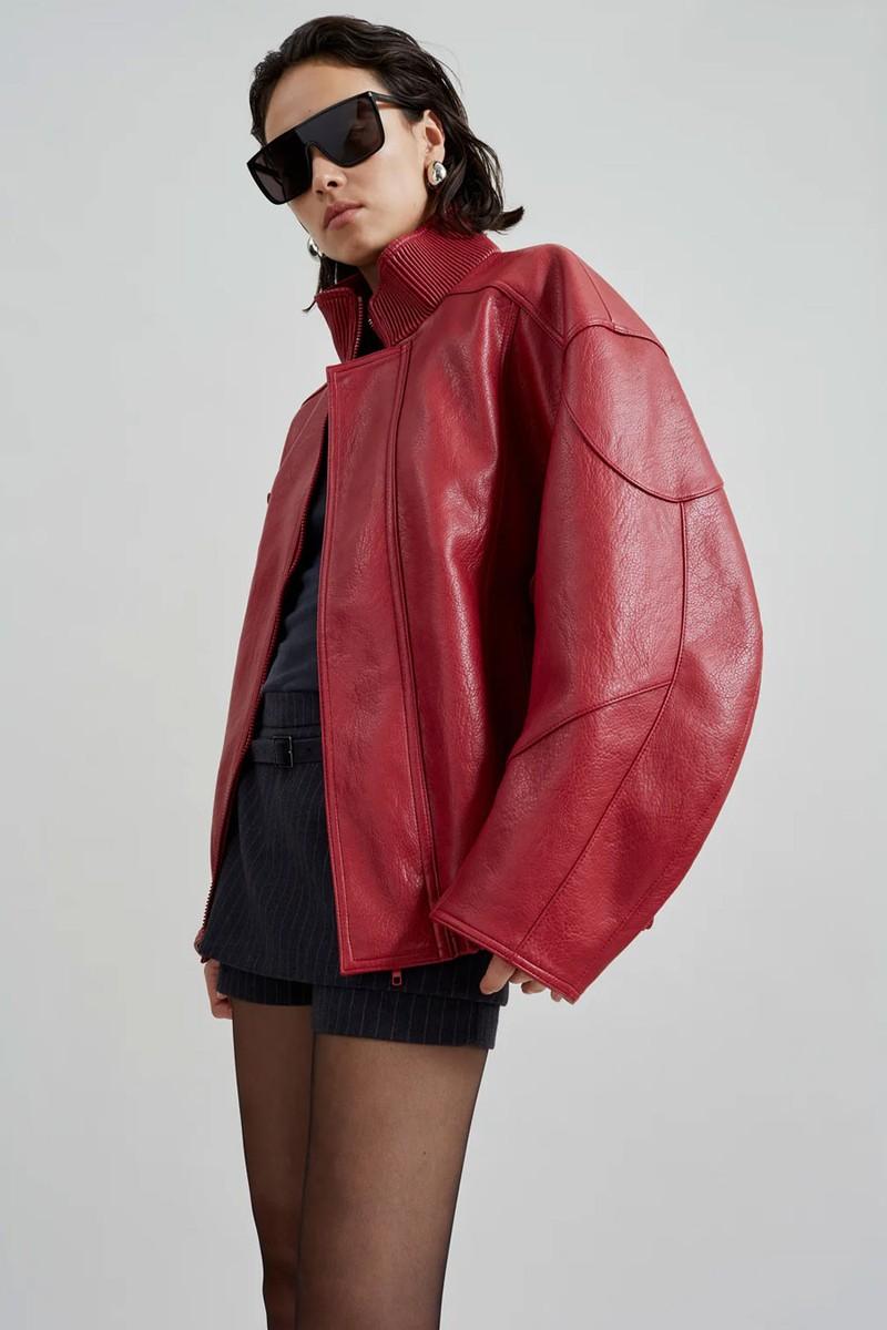 “The slouchy, oversized fit and vibrant colour puts a fresh twist on this classic bomber jacket. Dress it up with boots or keep things casual with jeans and a tee.”