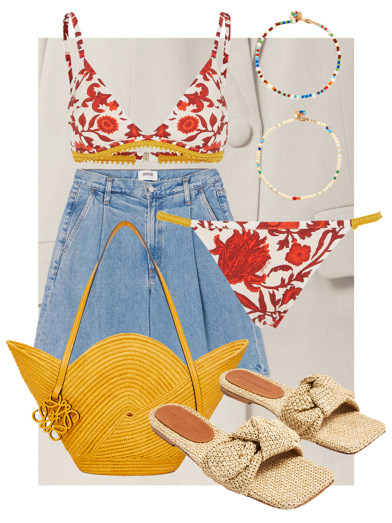 If you’re planning to spend the day lounging by the pool or on the beach, a matching bikini set is a no brainer. Pick an accent colour to carry through into the accessories for a cohesive look.