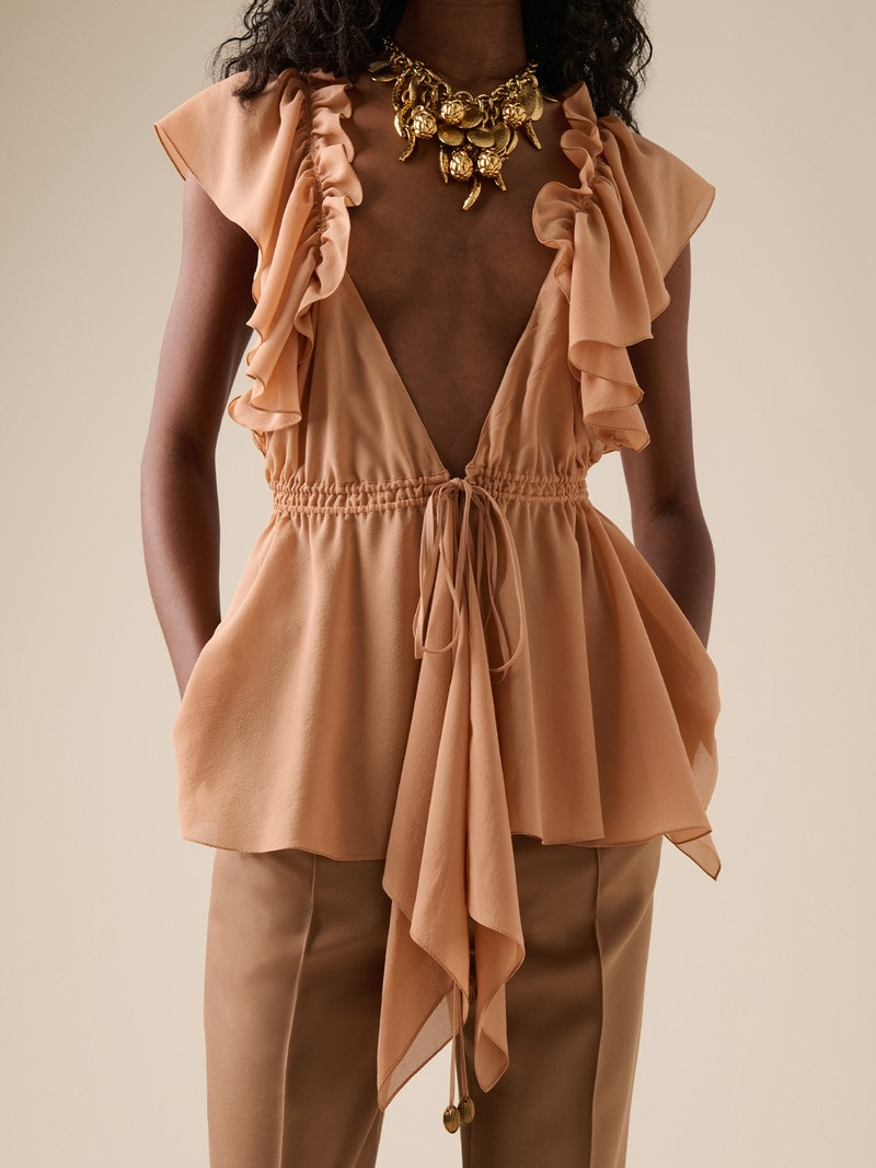 Style this gathered silk georgette camisole top with tailored trousers or a sleek skirt to let Chloé's bohemian ruffles take centre stage.