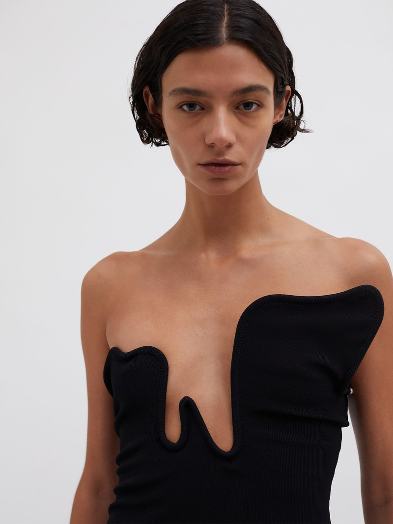Christopher Esber’s abstract sculptural pieces are calling us. Wear this top with a black column maxi skirt for the evening.