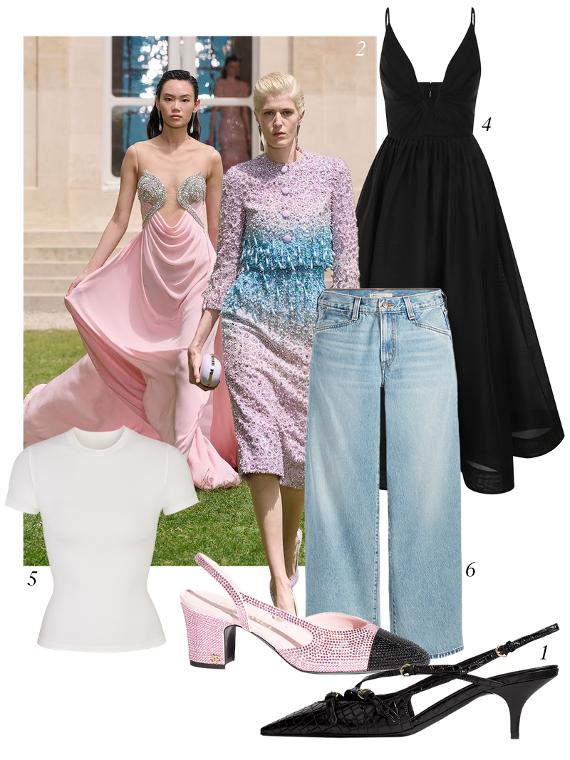 When I don’t know what to wear, my go-to outfit is a combination of Levi’s baggy low-rise jeans, a black skin-tight t-shirt from Skims, and a Chanel slingback heel.