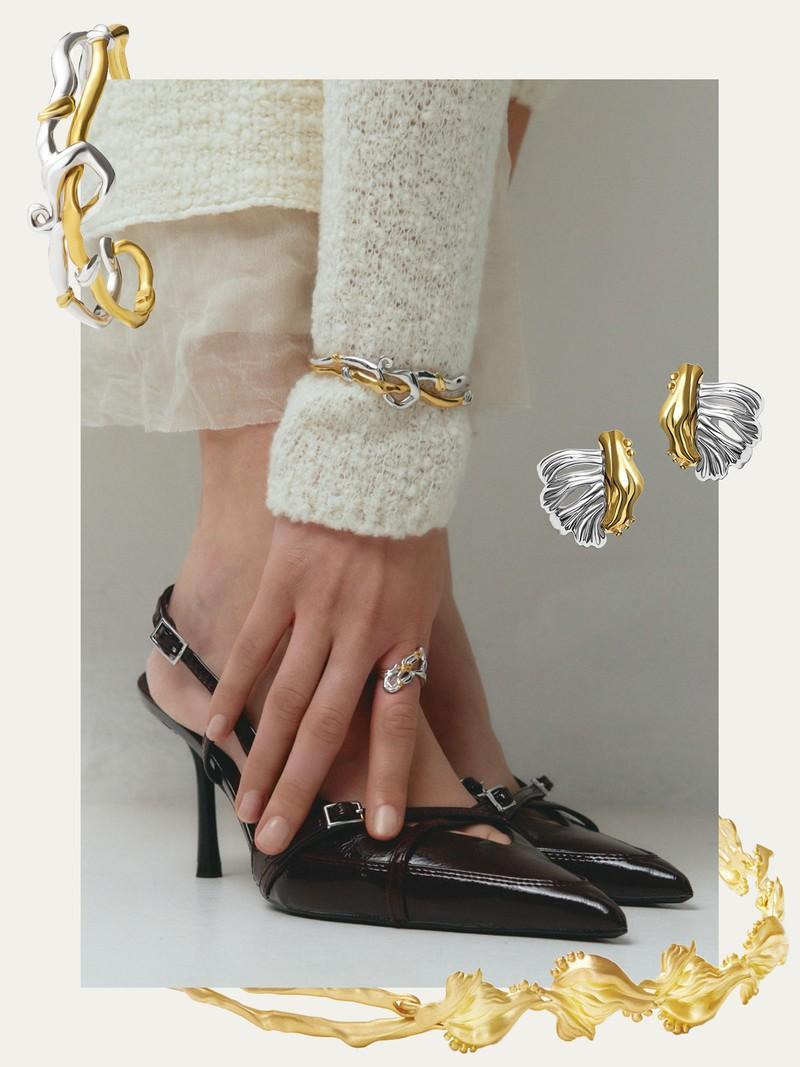 Empowerment is at the heart of every design. I envision bold, fearless, forward-thinking women wearing my pieces, and that image drives my creative choices. Each collection starts with a story or emotion I want to explore, and the jewellery becomes a vessel for that message. If I had to sum up the brand in a few words, I’d say boldness, authenticity, sustainability and organic. These values are the pillars of everything I do and guide my process in all situations. I don’t follow trends – I believe real designers set them.