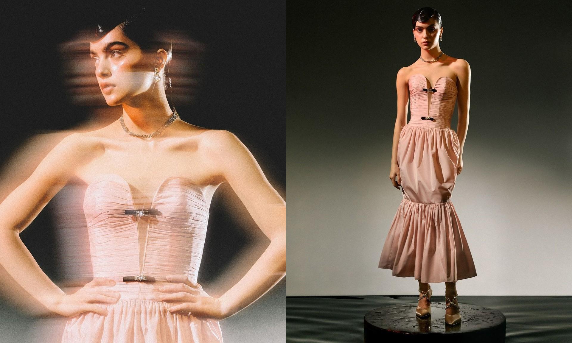 “I always design for independent, confident women who aren’t afraid to embrace who they are and be all that they are without reservations. My muse has this black cat energy about her, sort of chic with a side of dark humour. She always loves a story. We’re crushing hard on Grace Ghanem these days – I would love to dress her!”