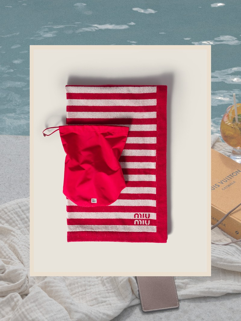 Wrapped in stripes and dripping in luxury, this Miu Miu towel will take any beach or pool day up a level.