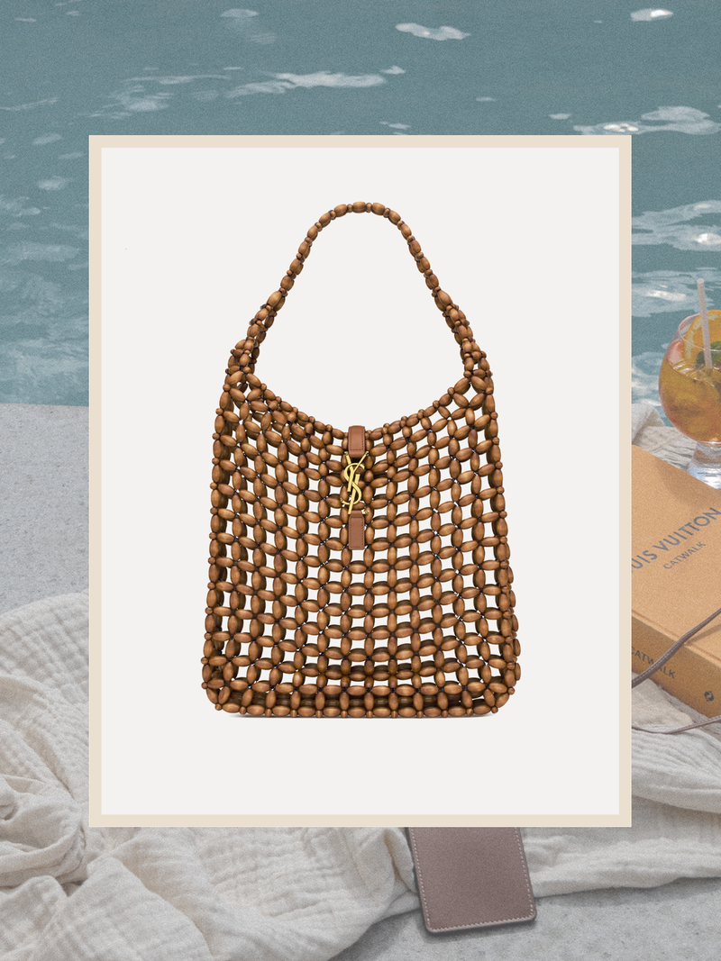 Crafted from wooden beads and finished with the iconic YSL charm, this tote will add texture and polish to any summer look.