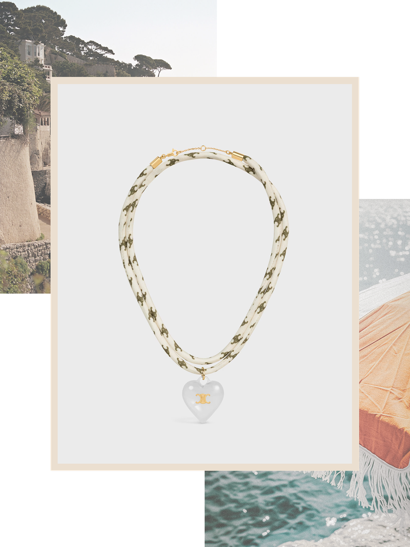 This Celine necklace, with its heart-shaped Triomphe pendant, blends playful charm with a nostalgic twist.