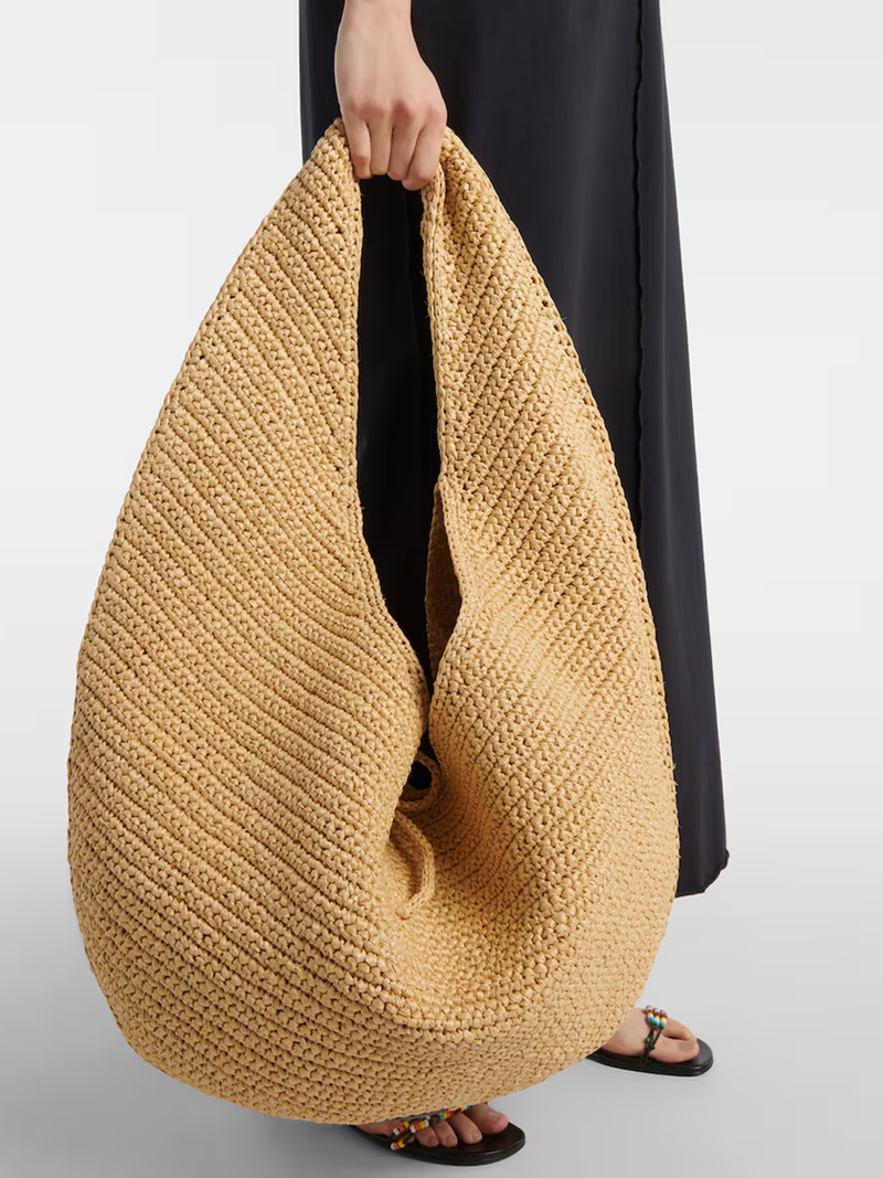 If you prefer to take a little bit more with you, this oversized Khaite raffia tote will fit everything you need.