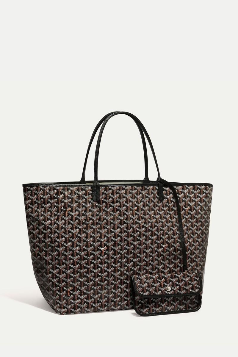Another easily identifiable option, the Goyard Black Goyardine Saint Louis GM Tote bag is glossy, luxurious and perfect for daily use or travel.