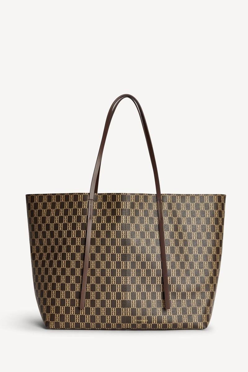 For a more affordable option, the By Malene Birger tote in coated canvas and leather boasts a sleek, timeless design – blending everyday style and practicality.