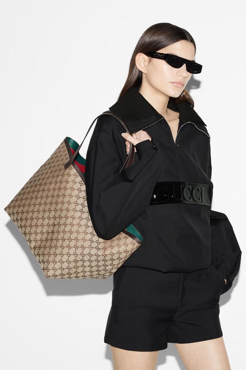 The GG Emblem tote, crafted from the brand’s instantly recognisable monogram canvas and contrast leather, brings a luxe edge to classic denim and white shirts.