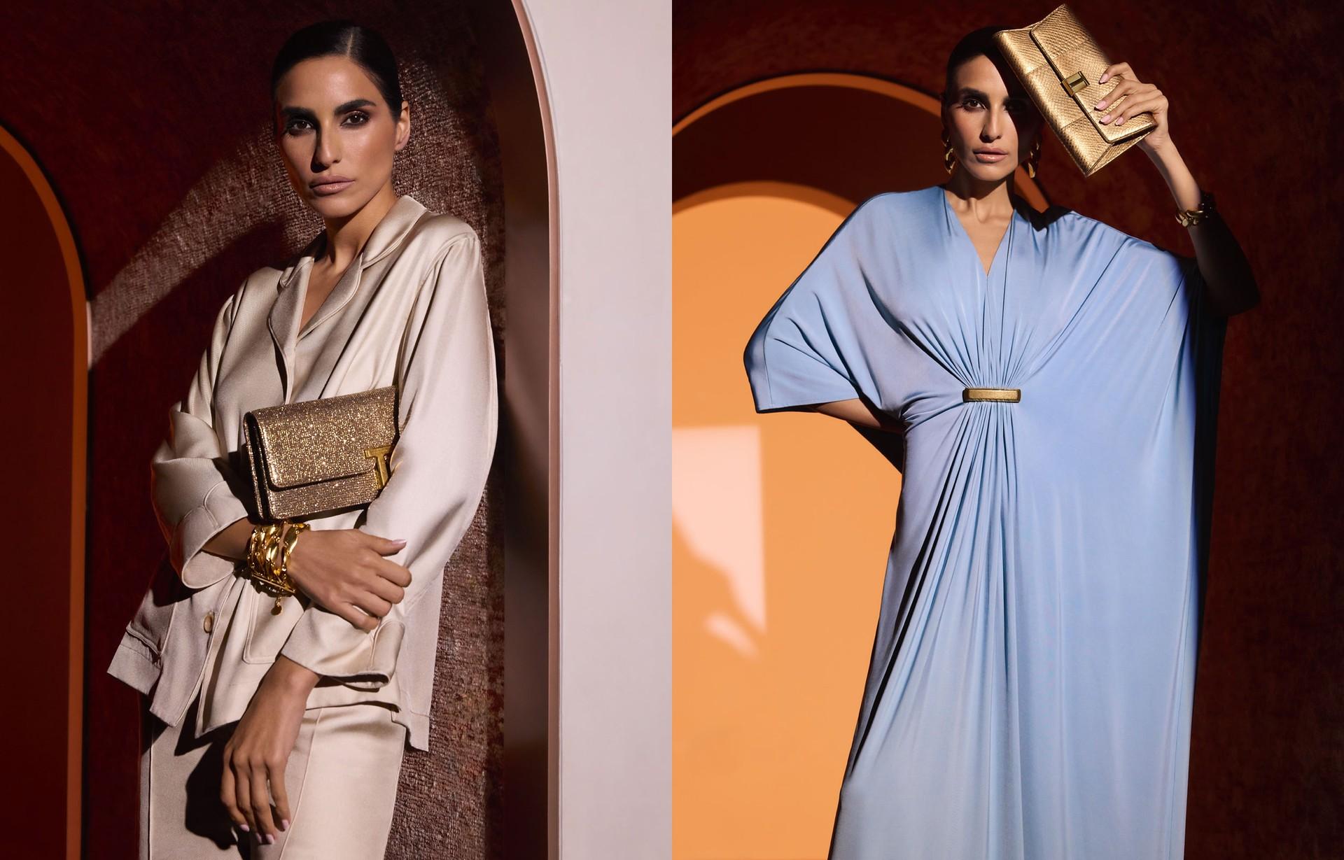 Designed exclusively for the GCC, TOM FORD has debuted its first-ever exclusive Ramadan collection, fusing signature elegance with the spirit of the season. Inspired by dawn and dusk, the limited-edition capsule showcases fluid kaftans, sleek co-ords and structured separates in serene sky blue and refined light sand. Statement accessories steal the spotlight – think gold glitter T-clasp bags and gold lizard heels for women, while men’s pieces feature emerald green croc-stamped wallets, dark wood sandals and deep aqua leather mules.