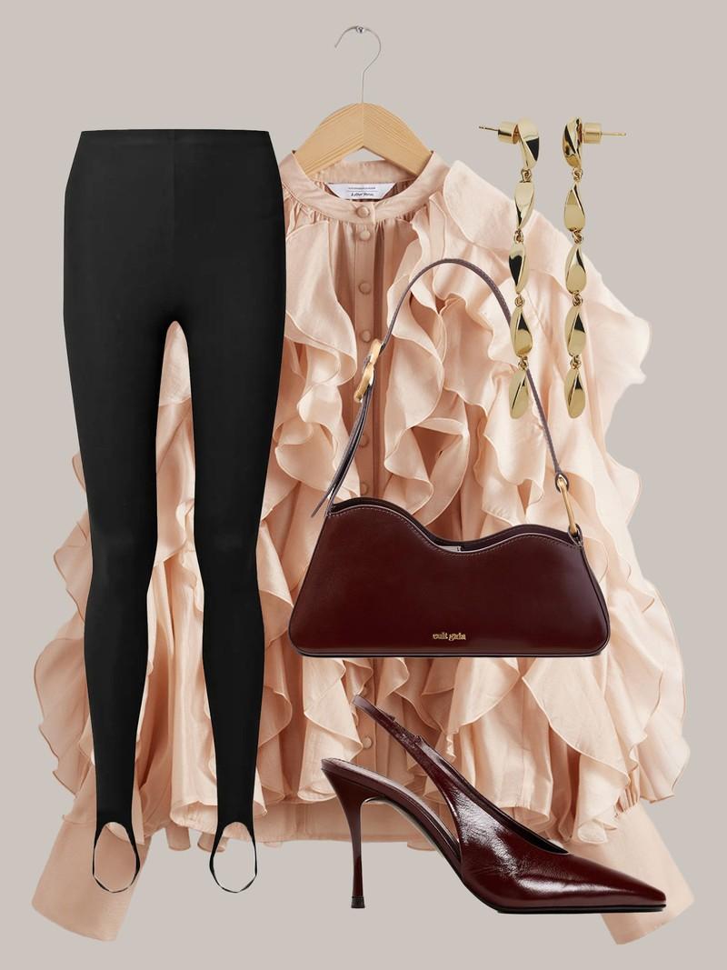 Comfortable and chic, stirrup leggings are the ideal partner for this statement blouse. Just dress it up with crystal detail accessories for effortless evening glamour.