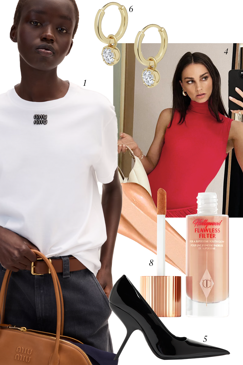 My SLVRLAKE light-wash wide-leg jeans are my go-to for a casual everyday look. I style them with everything, from a classic white Miu Miu tee to a crisp shirt.