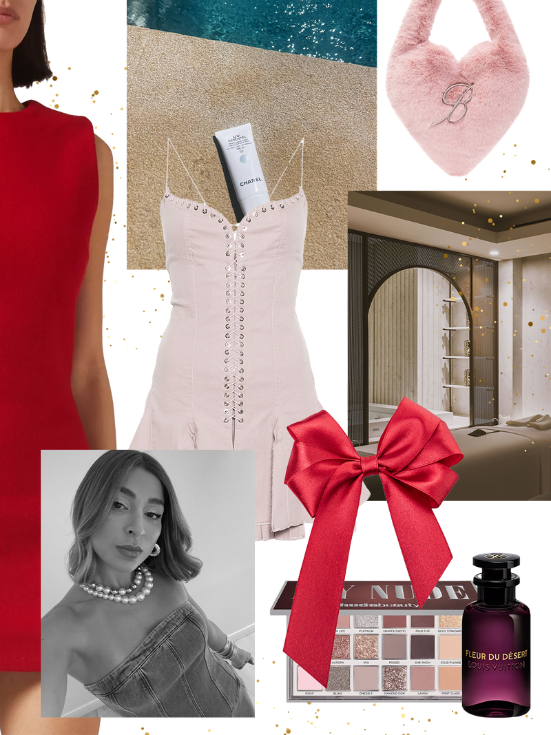 “For me, holiday dressing is all about standout pieces and playful details. For Christmas lunches, I’m eyeing the Alohas Vetmin Mini Dress paired with the Boogie Bow Bag by All Things Mochi and Tony Bianco Fantasy Heeled Boots. For New Year’s Eve, I’m planning something a little more feminine, like the Ludovic de Saint Sernin Cleavage Denim Mini Dress with the Blumarine Heart-Shaped Shoulder Bag and Alexandra Hakim Spiral Chili Earrings.