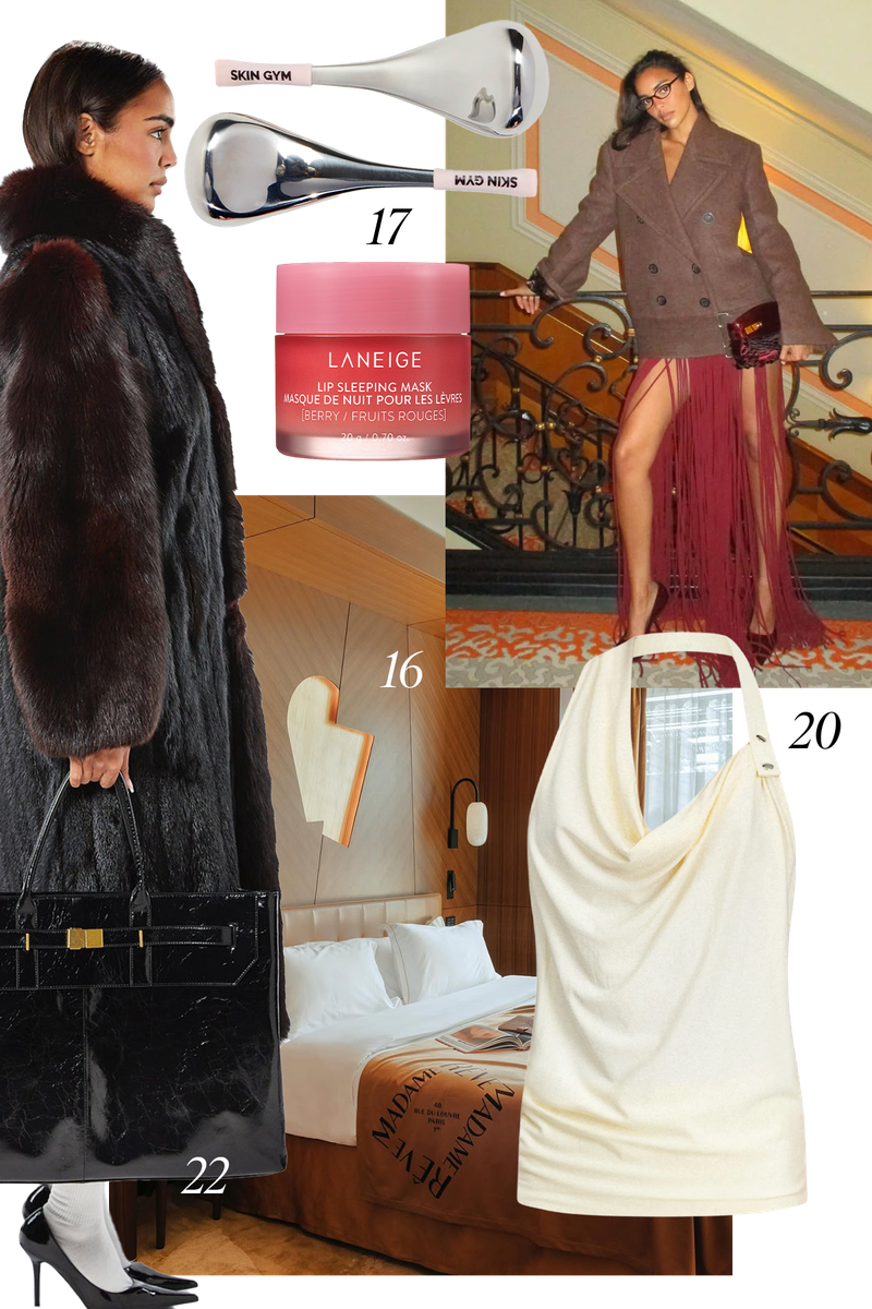 I never travel without my cryo facial globes– they’re amazing for de-puffing after long flights. My Airpod Max noise-cancelling headphones are a must, and I always keep a hydrating lip mask on hand. Those three things make every trip way more comfortable.